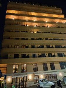 È un hotel con spa, club, appartamenti, roof garden, una palestra e, soprattutto, un’accogliente sala cinema. La sera adoro parcheggiare accanto alla casa dello studente e dirigermi verso quel palazzo a dieci piani, fermarmi all’ottavo piano per poi accomodarmi in una confortevole poltrona. Lì posso appoggiare i piedi su un puff al cui interno c’è una copertina per coprirmi in caso di brividi dovuti al freddo o alle emozioni. E quando si spengono le luci le emozioni ci sono davvero, il cuore comincia a pulsare ogni volta che la tenda rossa si apre sullo schermo.