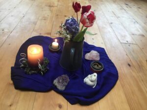 Le groupe (nous ne sommes que des femmes, du moins pour l’instant) est géré, coordonné et animé par Rossana, aux boucles rousses et un sourire accueillant. La première fois que j’ai participé aux danses, en accompagnant mon amie Claudia qui les avait déjà pratiquées et qui avait rencontré Rossana lors d’une conférence à Rome, j’avais peur de ne pas réussir à le faire, étant donné que je n’avais aucune expérience en danse. Mais je me suis immédiatement tranquillisée, voyant que les pas ne sont pas compliqués et qu’aucune préparation n’est nécessaire : Rossana montre les mouvements de chaque danse avec simplicité et patience, pour que, guidé par la musique, on ne se sente jamais en difficulté. Nous dansons disposés en cercle (figure chorégraphique la plus ancienne) autour d’un centre lumineux, composé d’un tissu, de quelques bougies, d’objets évocateurs, de minéraux et, lorsque nous levons les bras et levons les yeux, nous trouvons également un centre dans l’ouverture circulaire dans le toit.