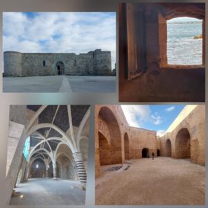 Costeggiando la via lungo il mare dalla fonte Aretusa arriviamo alla punta estrema dell’isola dove sorge il castello Maniace, costruito dal re svevo Federico II che lo intitola al generale bizantino Giorgio Maniace approdato nel1040 a Ortigia accompagnato da soldati Vichinghi.