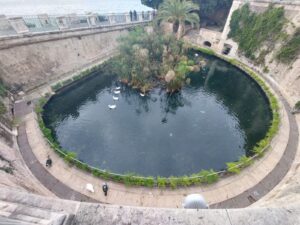 Passiamo il pomeriggio nella splendida isola di un chilometro quadrato che costituisce la parte più antica di Siracusa e l’ansa naturale verso il suo porto. Passeggiamo nel dedalo dei viottoli e vicoli che si aprono a cortili e piazzette fino ad arrivare alla mitica Fonte Aretusa e la statua di Artemide/Diana a cui il mito lega la storia dell’isola. Se nel passato l’area era più vasta, tra ruscelli, un bosco e la grotta, oggi resta un luogo suggestivo anche per la presenza di cinque ficus macrophilla secolari davvero impressionanti. Sorseggiando un buon caffè al pistacchio -ormai il pistacchio è diventato un ingrediente presente in ogni preparazione – leggiamo la storia della città, densa di avvenimenti, passaggi e insediamenti di popoli.