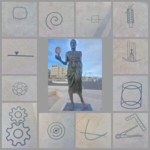 Di fronte al mare di è stata recentemente installata una scultura realizzata dallo scultore Pietro Marchese e l’architetta Virginia Rossello che raffigura Archimede con un compasso e uno specchio ustorio. Alla base della statua è rappresentato lo Stomachion su 14 tasselli di pietra bianca dove sono incisi i simboli delle sue scoperte e ambiti di ricerca: le macchine di Archimede, la fisica dei corpi solidi e liquidi, l’astronomia, la matematica dei grandi numeri come il calcolo combinatorio, appunto lo stomachion con le sue 17152 possibili combinazioni.