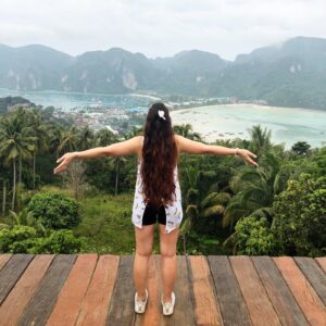 Aggiungerei un costume da bagno, ho sempre bisogno di sole, acqua e relax, poi l’occorrente per la manicure e scarpe comode perché, pur non essendo una fan dell’attività fisica, mi piace perdermi nei posti. Infine porterei nel mio bagaglio tanta curiosità e apertura verso il diverso, sono aperta al mio futuro e a quello che c’è intorno a me.