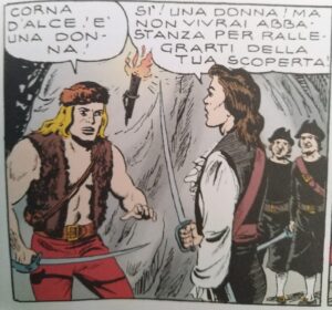 Nell’evoluzione del fumetto italiano degli anni Cinquanta e Sessanta, vediamo che ci sono elementi che provengono da altri campi cinematografici generi letterari partiamo da un esempio noto la collana che racconta Essegesse Le vicende di …si racconta che il biondo trapper arriva in un piccolo villaggio costiero dove tutti gli uomini sono spartiti e le donne i bambini e gli anziani rimasti hanno paura di una nave pirata abitata dai fantaasmi. T>utto questo richiama le avventure di Black che andrà alla ricerca dei pirati e sarà al cospetto dei pirati di un’affascinantre giovane donna che si presenta come la capitana di questa ciurma naturalmente il riferimento è da una parte al mito dell’olandese volante del folclore nordino ripreso dall’opera lirica di wagner del 1940 e qdel vascvello fantasma che solca i mari con gli spettri per mettersi in contatto con i viventi. ma l’aspetto principale è la presenza femminile al vertici di questa ciurma di pirati che rimanda al famoso romanzo di emilio Slagari Yolanda la figlia del capitano nero la cui protagonista è un’indomita fanciulla nel mondo di uomini rudi. e vediamo cher questa figura di yokanda racconta le vicende di due avventuriere del XVIII secolo: Mary Reds e Anne Bonny che erano due donne dai metodi assai poco femminili perché appunto la Anne Bonny nel 1697 e morta nel 1782 era una ragazza di origine irlandesi che aveva abbandonato il marito marinaio per seguire il pirata Jack Wacman detto carico jack e intraprende con lui varie scorribande nei mar dei Caraibi e nel frattempo mary Red che si faceva chiamare ….e vestiva abiti maschili per solcare i mari nelle golette per solcare i mari poi combatte prima per la marina inglese e poi quando la nave viene catturata dai pirati JAck Rackman e la sua compagna Bonni si unisce a loro dandosi a azioni pirateschi e le due donne diventano una coippia di donne formidabili. si narra che alla fine della battaglia mary uccida tutti coloro che non avevano combattuto da veri uomini fino alla morte di Rackman che viene impiccato a Port Royal insieme ai suoi marinai e pirati solo le due donne sfuggioranno alla pena capitale perché entrambe incinte. Insomma da queste vicende anche riguardo al cinema abbiamo diversi riferimenti. Già negli anni Cinquanta a Holliwood con il film di Jacque Turnier ocn La regina dei pirati ma anche il nostrano Jolanda e la figlia del corsaro nero di Mario SOldati con May Britt e un giovanissimo Renato Salvatore, noto per I soliti ignoti. e poi ancora nel 1960 Mario Costa che realizza la Venere dei pirati. quindi continua questo fdilone in cui in questo caso c’è la sensuale Gianna Maria CAnale che interpreta la sensuale capitana Sandra a capo dei pirati. Tornando ai fumetti negli anni Sessanta quando interessa un pubblico adulti , gli editori si accorgono delle potenzialità erotiche del personaggio di Salgari e danno vita a eroine senza paura spesso prive anche degli abiti. Per es. nel 1970 Furio editore dà alla stampa Jolanka sceneggiato da Luigi Naviglio disegni Pietro Gamba e poi successivamente mesi dopo Jpolanda de Alma viva pubblicato casa editrice erregi di Renzo Barbieri e Giorgio Calendon e i testi firmati da Roberto Renzxi e disegni diArmando Bonato per i primi dodici album e poi Mino Manara che aggiunge sicuramente nelle serie che continuano fino al n. 62 uno stile grafico e valore aggiunto . quando nel 1976 jolanka conclude le avventure Naviglio crea la serie il Corsara Nera e ancora il riferimento è all’opera di Salgari e il nuovo fumetto sfocia in un erotismo sempre più dichiarato. Editore Lamec sdi silvano vianello gli autori sono….staff di If la testata durerà fino al 1980 con 107 numeri ebbe uncerto successo possiamo dire che di molto si sono allontanti dai tempi della bella capitana delle Essegesse e la sua immagine si è sbiadita sostituita da eroine molto meno romantiche e molto più intraprendenti. con questo spaccato vediamo la trasformazione del filone della pirateria al femminile