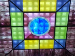 All’uscita sono stata l’unica a vedere una finestra colorata, in alto, sulle scale.