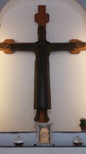 Le monastère des Pères Carmélites Déchaussés, fondé en 1176 par Pipino, évêque de Luni, abrite le Crucifix en bois tunique du XIe-XIIe siècle, une œuvre vraiment originale et de grande valeur. Sculpté dans des troncs d’orme, il mesure 263 cm de haut et 264 cm de large, le visage mesure 49 cm de long. Son originalité réside dans ses traits orientaux avec des pommettes saillantes, une moustache tombante, une barbe divisée en deux sur le menton avec des ondulations le long du cou et de longs cheveux tombant sur les épaules dans le style nazaréen. La légende raconte que le crucifix serait arrivé miraculeusement au port de Luni sur un navire sans équipage en 742 après J.-C. Les chercheurs pensent qu’il pourrait provenir des colonies d’Espagne, de Corse ou de Sardaigne avec lesquelles Luni entretenait des relations maritimes à l’époque carolingienne. D’un point de vue artistique, c’est le chercheur Hug Honour qui l’a défini comme l’un des plus beaux exemples de sculptures romanes en Italie, ce qui a conduit à sa restauration en 1961.