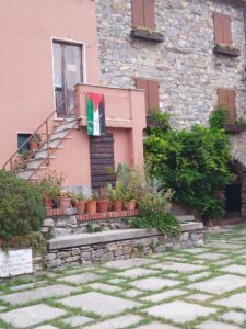 Après une baignade, nous dégustons la meilleure focaccia jamais mangée chez notre cher ami Nunzio, maître incontesté de l’un des plus beaux coins d’Italie avec sa fenêtre sur la mer à côté de la Torretta où il accueille des hôtes du monde entier. Nous redescendons sur le front de mer et prenons la voiture pour monter à Montemarcello, l’un des plus beaux villages d’Italie. Le parcours, frais et boisé, offre des vues magnifiques entre la végétation et la côte. Nous nous arrêtons sur la place XIII Dicembre qui commémore la tragedie du 13 décembre 1944, où 35 habitants du village ont péri sous les décombres des bâtiments détruits par les bombardements. La place a été construite sur les ruines et est aujourd’hui un lieu de rencontre et d’événements. Nous sommes frappés par une inscription ajoutée sur un mur : « Everyday is the 13th of December in Gaza » (Chaque jour est le 13 décembre à Gaza), accompagnée d’un drapeau palestinien.