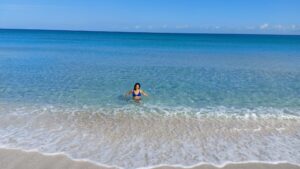Mais c’est la mer qui nous séduit définitivement. Le climat doux invite à faire une pause sur la longue plage de sable clair. L’eau est transparente, calme, incroyablement accueillante. Après les vagues de l’Atlantique marocain, plonger dans la Méditerranée ici a un goût familier, presque nostalgique. Ce littoral, à quelques pas du centre, rappelle certaines plages de Sardaigne ou de Grèce : sauvages mais accessibles, simples mais spectaculaires.