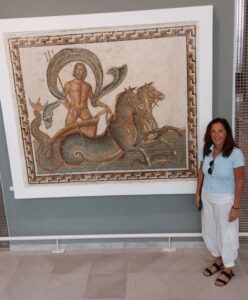 Par une matinée ensoleillée, nous quittons La Marsa pour nous diriger vers Tunis, avec une étape incontournable : le célèbre musée du Bardo, qui abrite certaines des mosaïques romaines les plus extraordinaires au monde. C’est le prélude idéal à un voyage qui s’avérera être un dialogue permanent entre passé et présent.